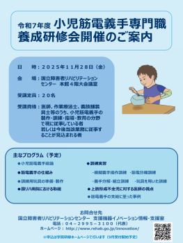 国立障害者リハビリテーションセンターで開催する、補装具(注)に関するイベントと小児筋電義手を啓発する研修会についてご案内いたします。