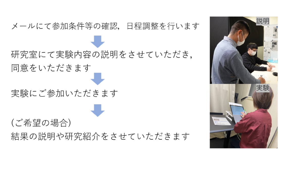 様々な実験を行っております。現在募集している実験は、下の「研究説明書」をご覧ください。
