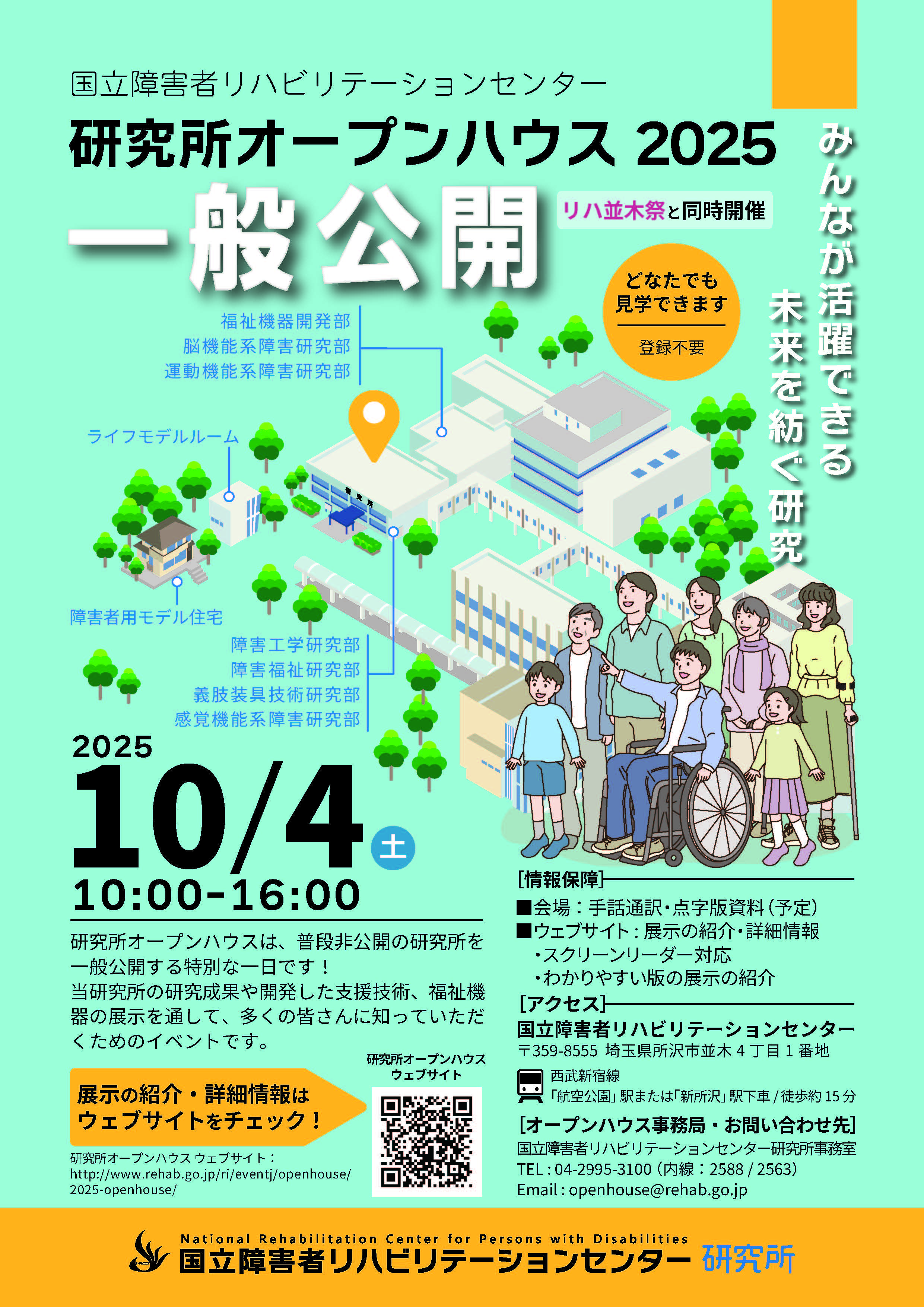 本研究所オープンハウスに関する取材等ございますときは、国立障害者リハビリテーションセンター企画課までご連絡ください。